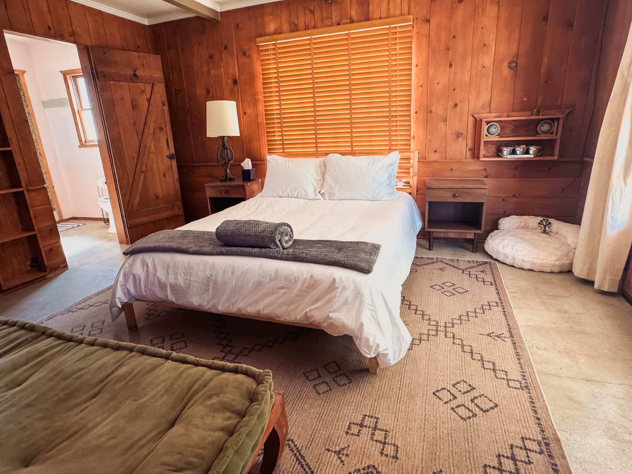 Step back in time at our 1950s Old West-style motel! It’s just a quick drive to the National Park and a stroll to downtown restaurants, bars, and the Farmers Market. Stay cozy in original living quarters with a full kitchen, bedroom (sleeps 2), en-suite room (sleeps 4), and vintage vibes. Tucked away from the highway for ultimate privacy, it’s the perfect peaceful getaway. Warm decor, a unique desert setting—your next adventure starts here! **Room 1 and 2 have a shared door inside the room Old West charm meets comfort in Room #1, the original manager’s quarters at Joshua Tree Ranch House Motel! Built in classic 1950s style, it offers a full kitchen, bathroom, cozy bedroom, attached living room with a pull-out bed, and a spacious patio for relaxing or dining. Perfect for 5 people, with space for friends to stay while keeping the bedroom private. Among the best rates in town, it’s close to the National Park and downtown hotspots. Set back from the highway, enjoy a peaceful desert getaway with HVAC and complimentary coffee/tea! Room #1 features a full kitchen, bathroom, bedroom, and a cozy living room, warmly decorated in a distinct desert style. The living room is perfect for hosting friends and family during the day, creating a great gathering space while keeping the bedroom private. Living room includes a twin-size bunk bed (sleeps 2) and a futon couch bed (sleeps 1). Relax, dine, and enjoy the inviting desert ambiance in this versatile and charming space!
