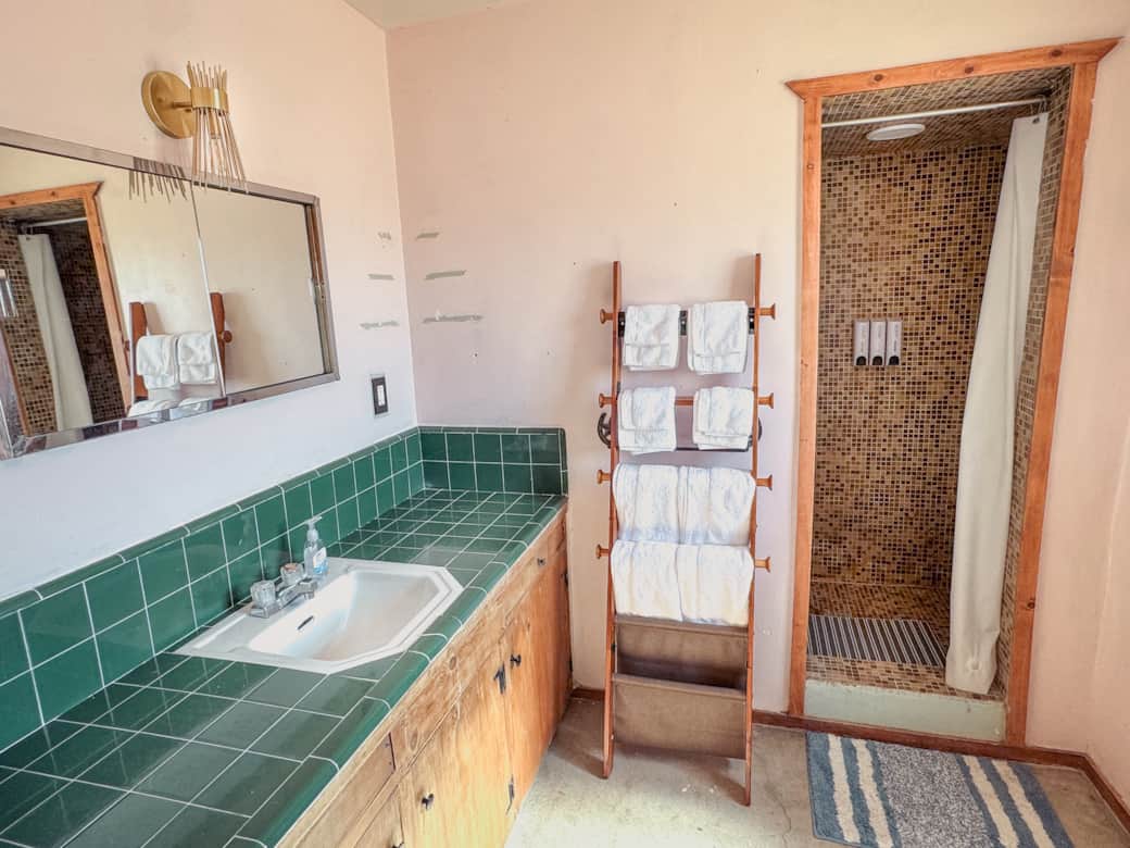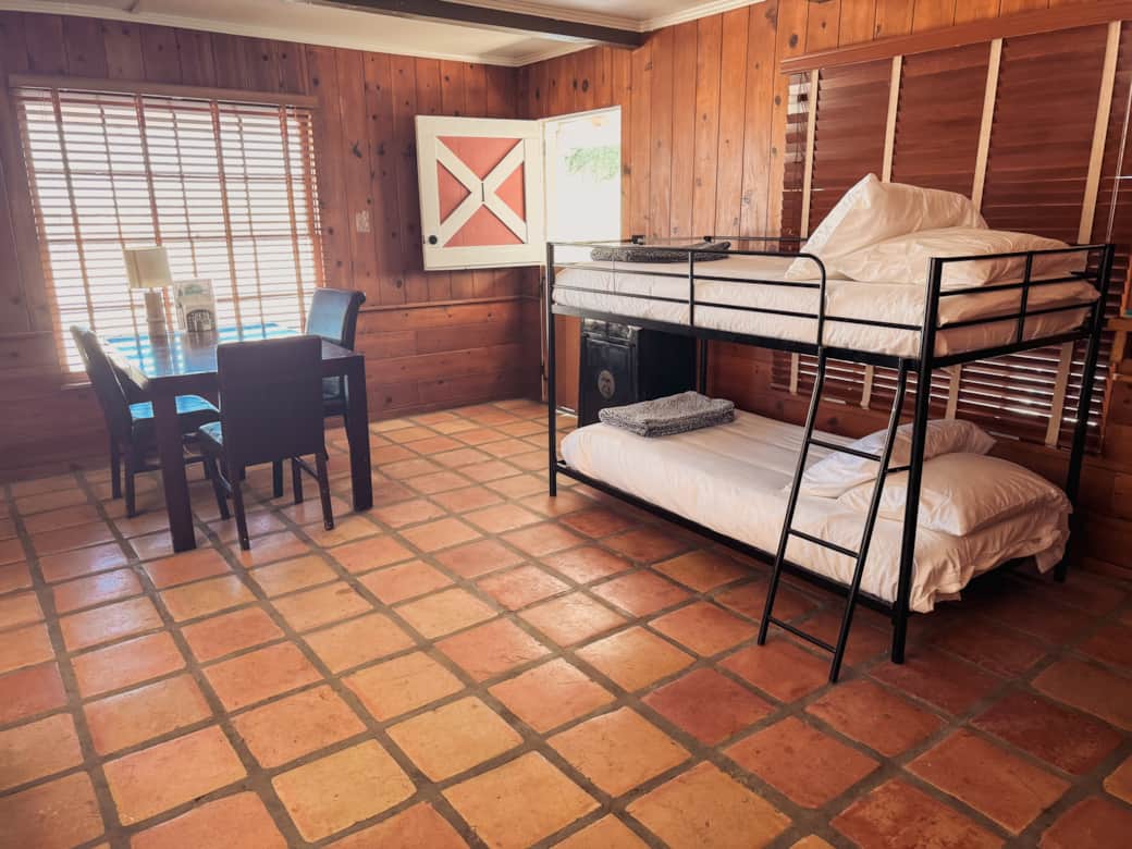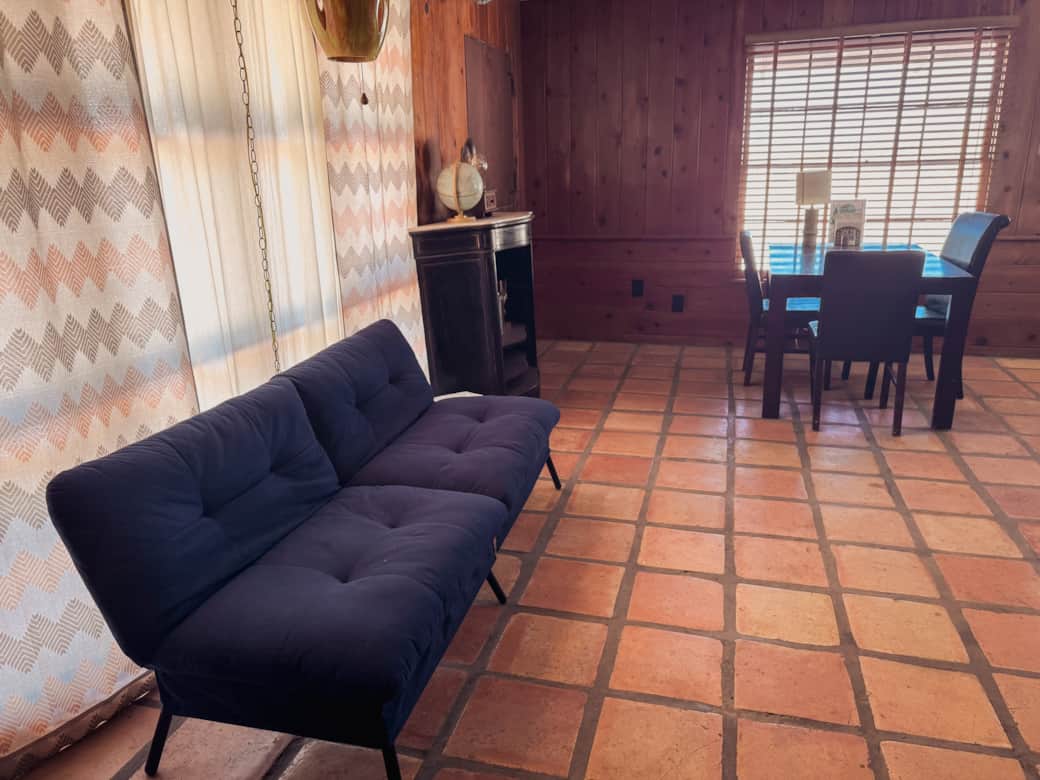 The living room is perfect for hosting friends and family during the day, creating a great gathering space while keeping the bedroom private. Living room includes a twin-size bunk bed (sleeps 2) and a futon couch bed (sleeps 1). Relax, dine, and enjoy the inviting desert ambiance in this versatile and charming space!