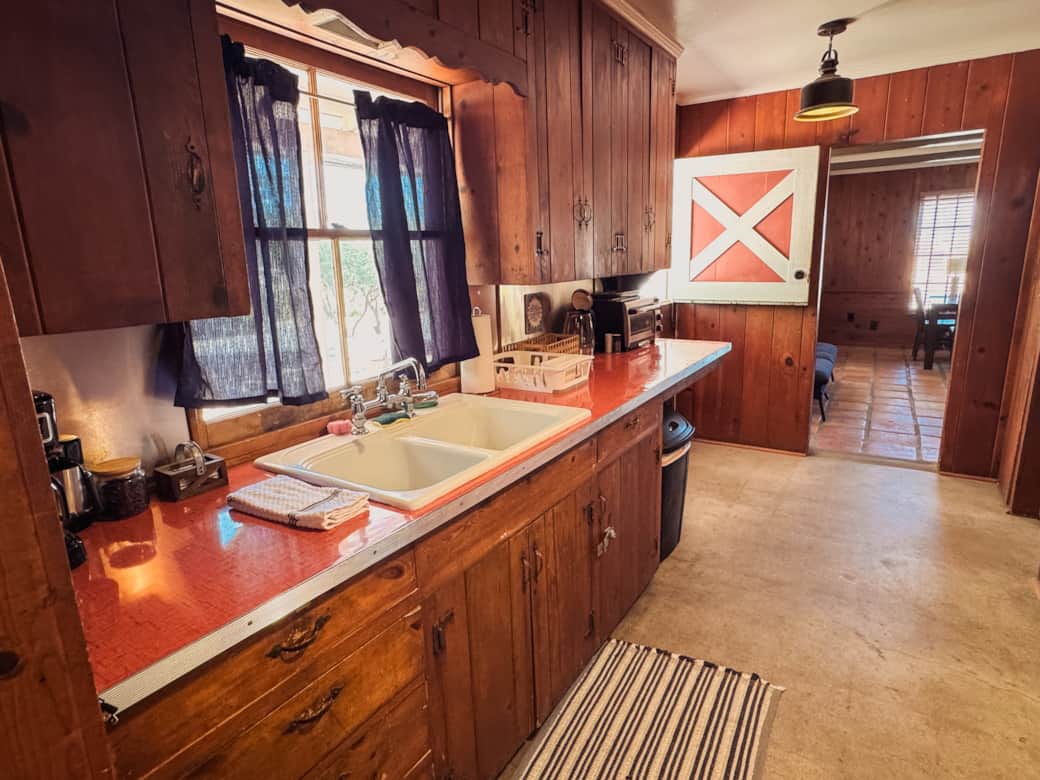 **Room 1 and 2 have a shared door inside the room Old West charm meets comfort in Room #1, the original manager’s quarters at Joshua Tree Ranch House Motel! Built in classic 1950s style, it offers a full kitchen, bathroom, cozy bedroom, attached living room with a pull-out bed, and a spacious patio for relaxing or dining. Perfect for 5 people, with space for friends to stay while keeping the bedroom private.